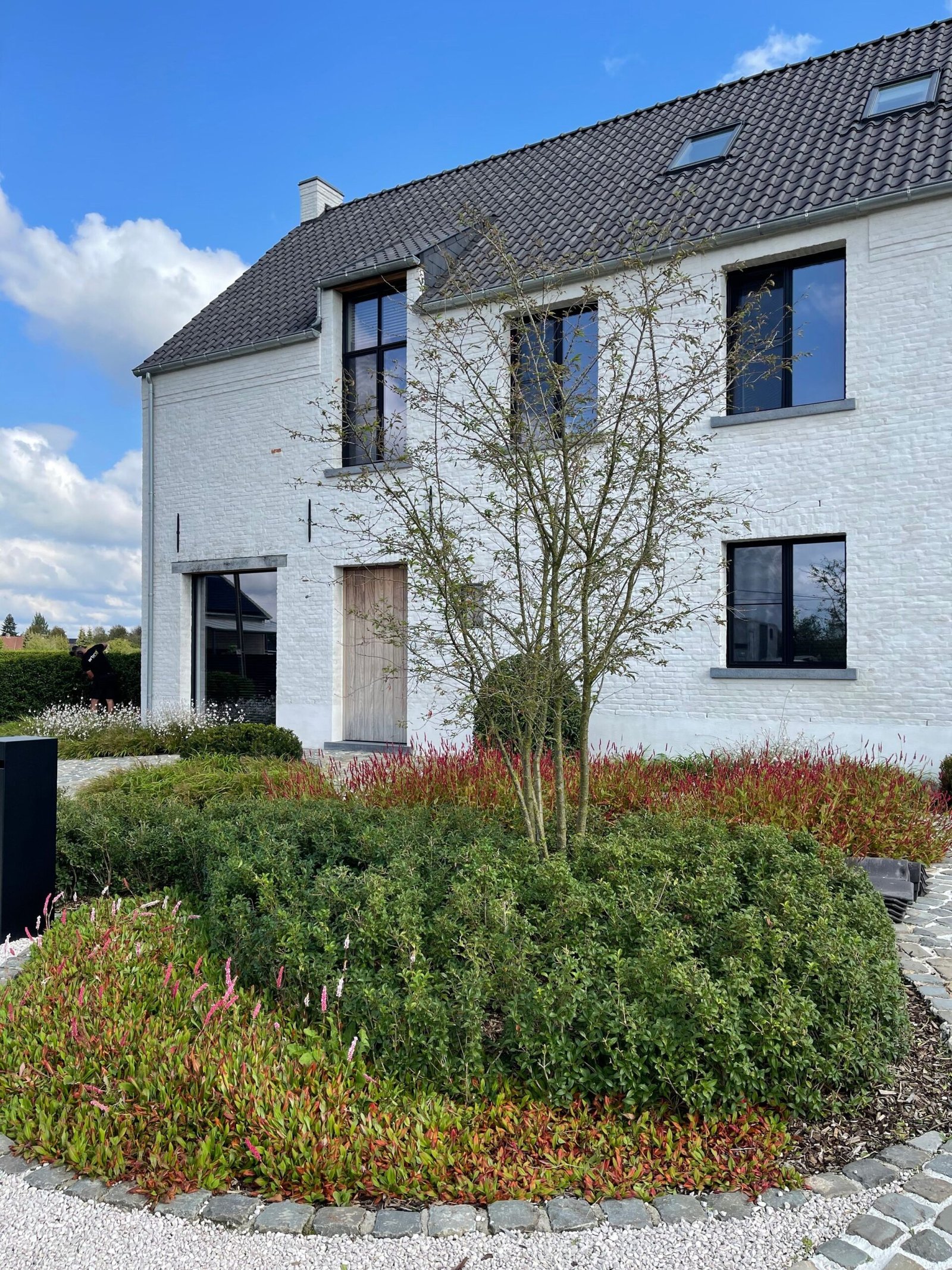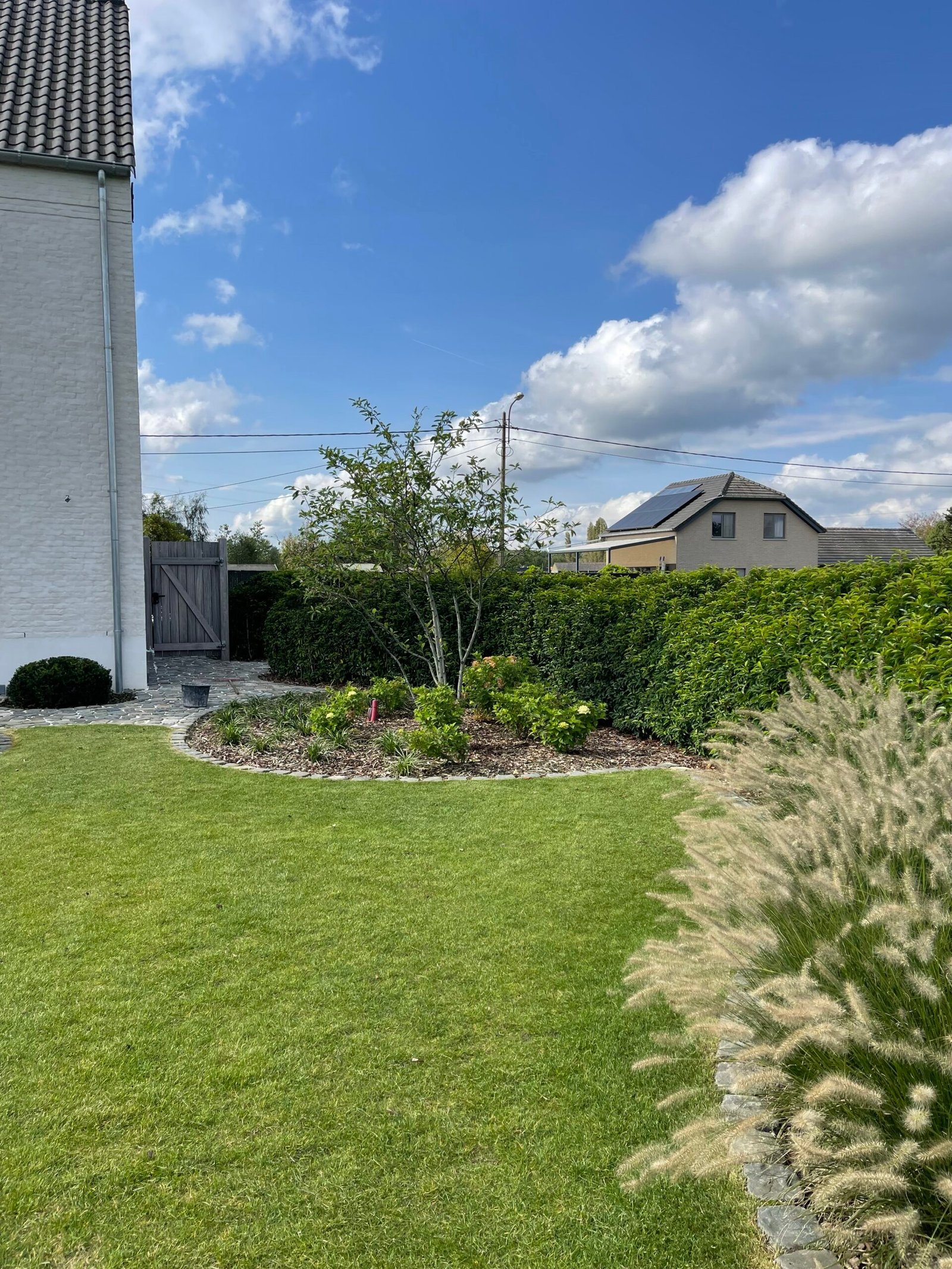 Voor deze landelijke woning in Duffel stonden we in voor de volledige tuinaanleg. We realiseerden een nieuw gazon, doordachte beplanting en sterke groenstructuren die het karakter van de woning extra in de verf zetten.